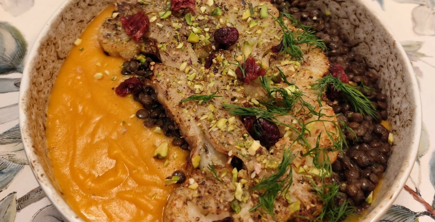Crumble de noisettes aux légumes rôtis & au thym du jardin