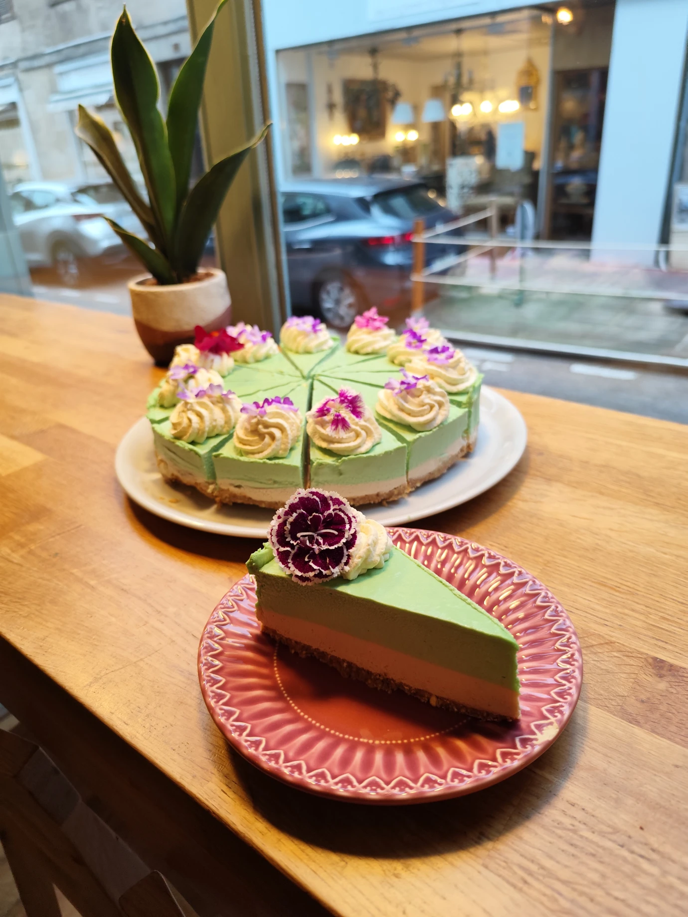 Nous vous accueillons dans un cadre chaleureux, du petit-déjeuner au goûter, sans oublier le brunch des jours fériés. Notre salon de thé reste ouvert en continu, avec pâtisseries véganes, jus frais et boissons chaudes maison.